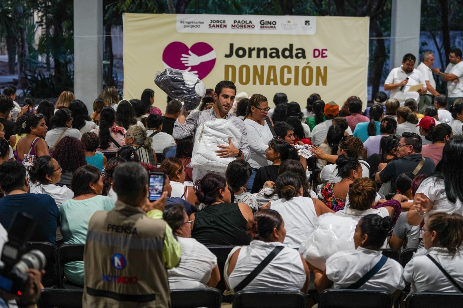 Con la colaboración de empresas solidarias como Nizuc, Fundación Dreams y Empresarios por QRoo, el senador Gino Segura respaldó una jornada de donación que benefició a más de 300 familias del Distrito 6 con artículos de descanso.